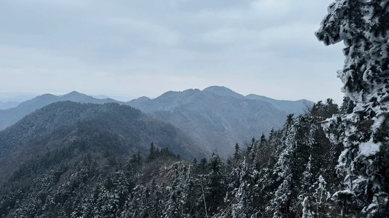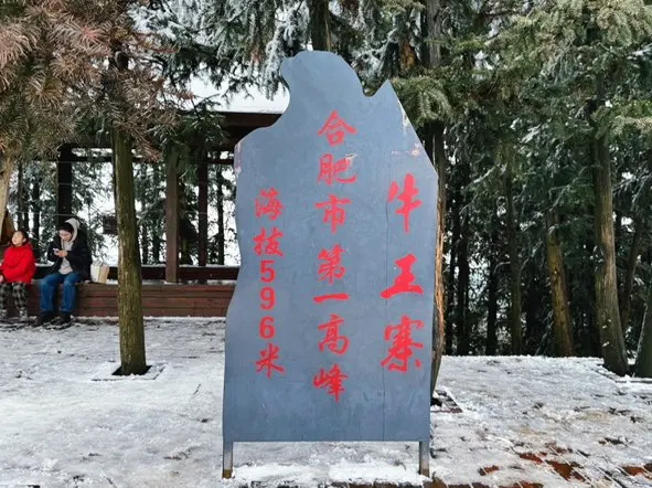 层叠的远山尽收眼底。一路穿梭山林,直奔海拔596米的合肥之巅,雪后的牛王寨美到犯规,雾凇冰挂缀满枝头,