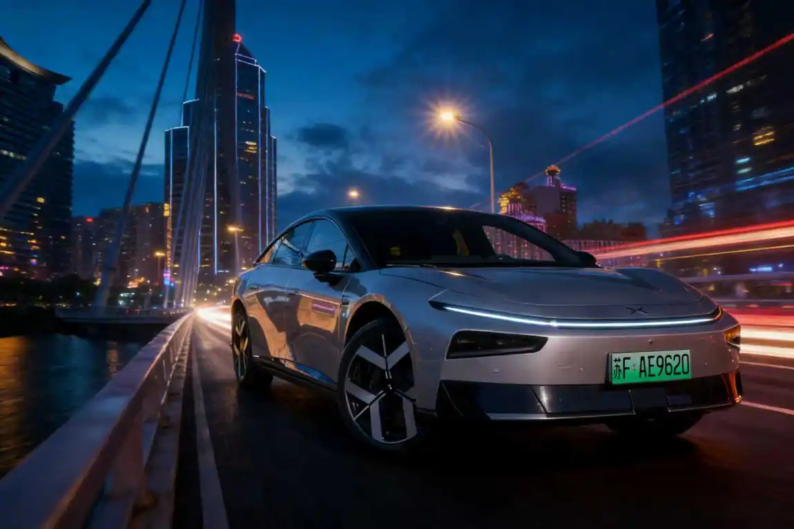 - 提示词补充:在描述框里输入:「银灰色小鹏P7+在澳门夜景大桥上匀速行驶,车流光轨、蓝调氛围、画面稳定、长曝光动态效果」。