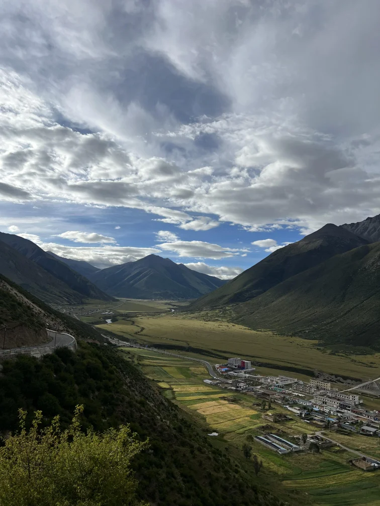 驶入墨竹工卡的清晨,藏在河谷里的村庄还裹着薄雾。路牌上“松赞故里 天边墨竹”的白色大字在山坡上格外醒目,我把车停在观景台,看着雅鲁藏布江在脚下舒展成碧绿的丝带。