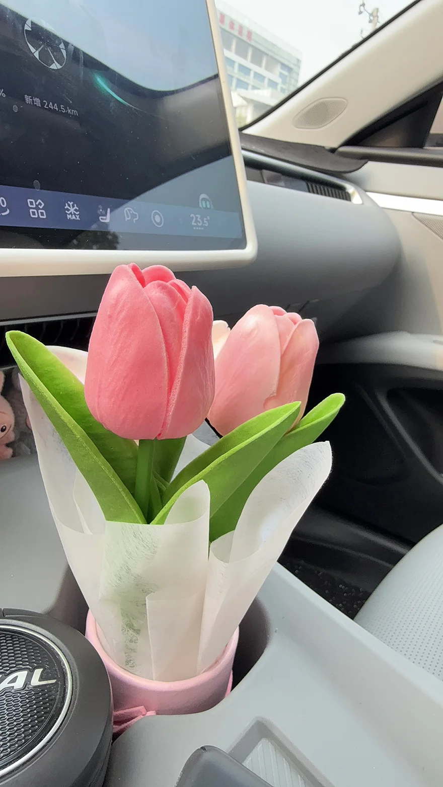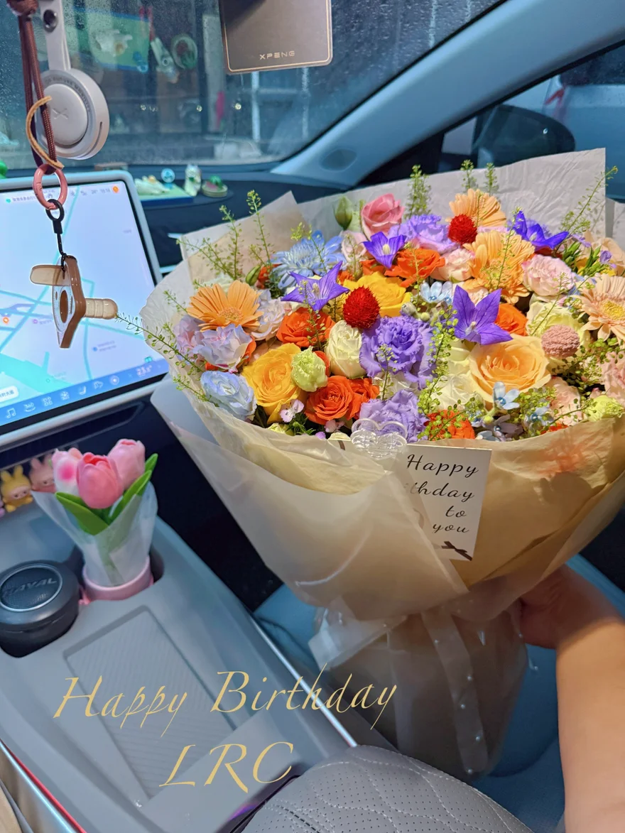 我最喜欢看她坐在副驾的样子。有时候下班接她,她会突然从背后变出一小束花,不是什么特别的日子,可能就是路过花店,看到向日葵开得好,就买来送我。她说:“放车里,你开车看着心情好。” 也可能是网上买的一束永不败的花,那花就插在杯架里,淡淡香香的,陪我们穿过晚高峰。