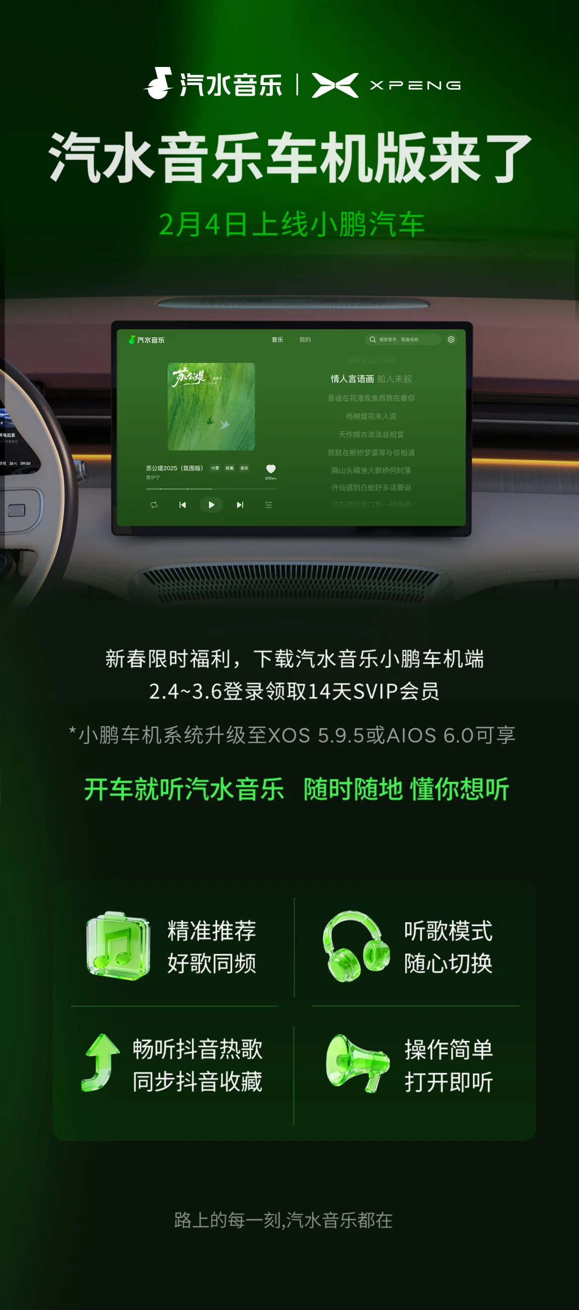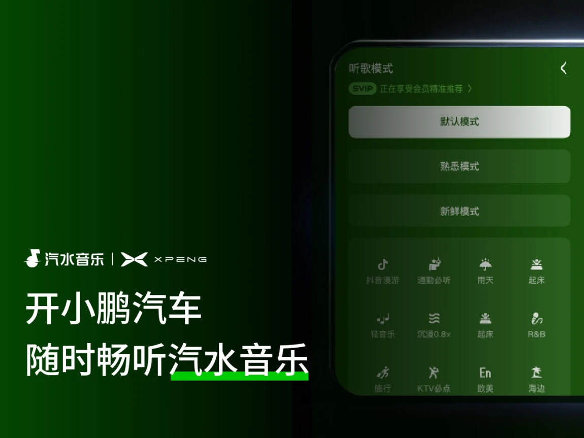 汽水音乐小鹏车机版上线啦 限时领SVIP会员!