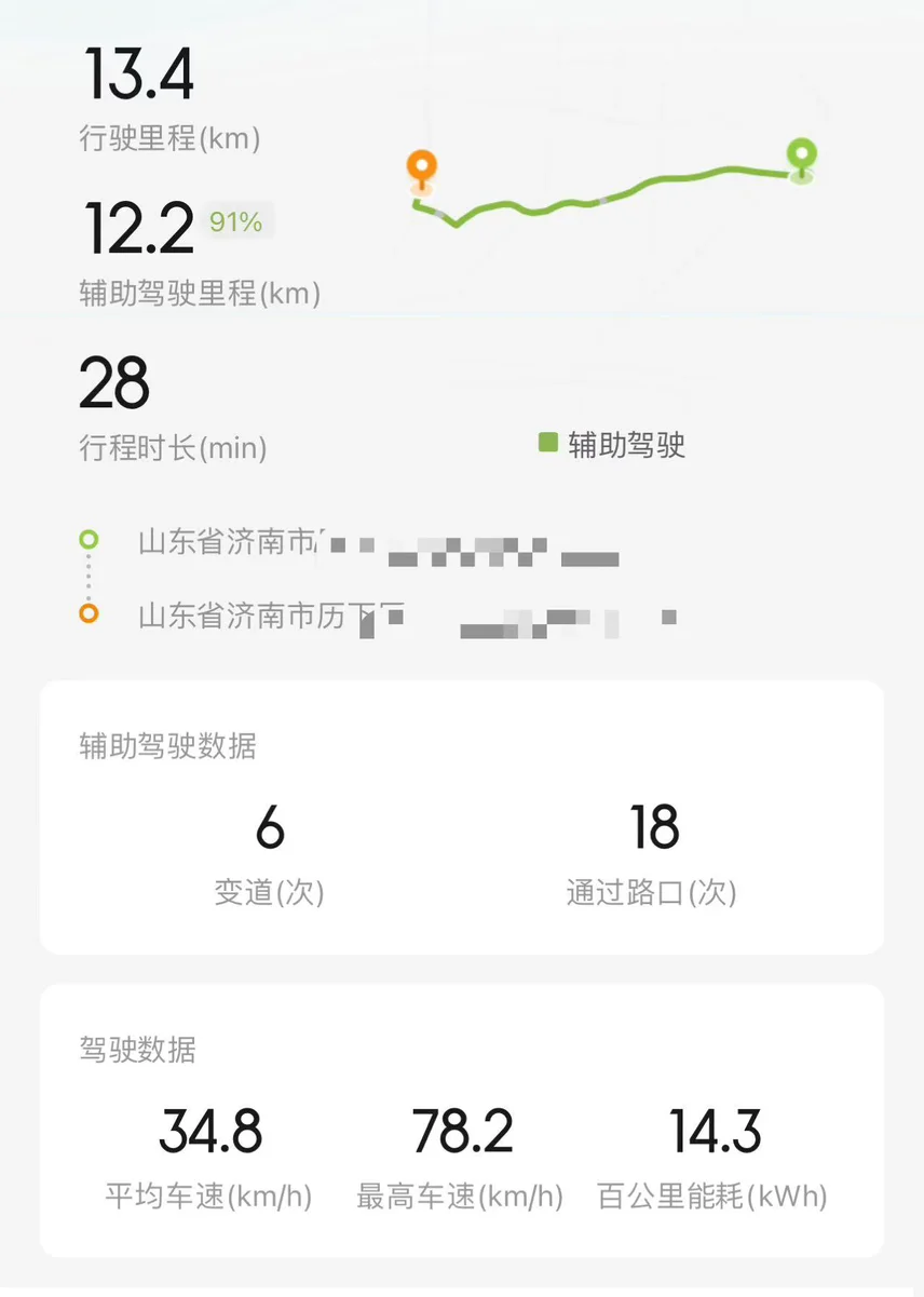 今天的市区早高峰,从家到目的地13公里,一路智驾,相当丝滑,超车变道果断,面对加塞预判更早,减速柔和不少,遇到大车会自动拉开横向距离,安全感拉满,感觉有L3、L4那味了。并且冬天早晨的电耗才14,这么低👍🏻