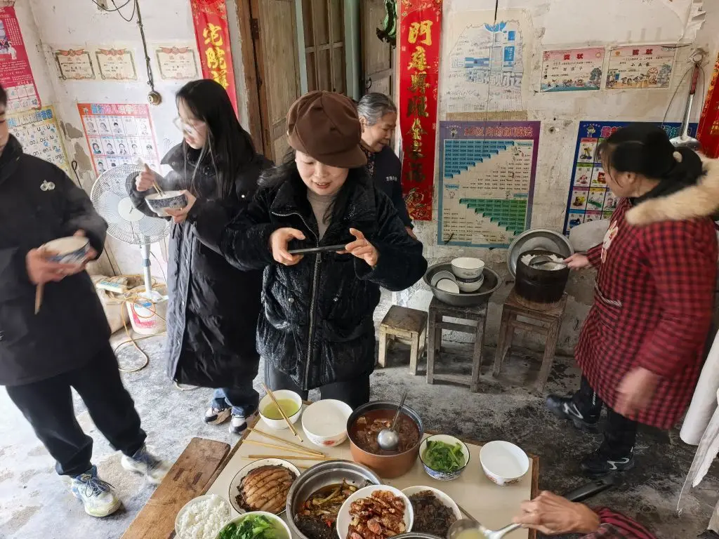 晚上,厨房里柴火灶的火光映着老屋的土墙,铁锅里的青菜蛋汤咕嘟作响。而屋外,小鹏G9的哨兵模式正安静地守护着这份安宁。