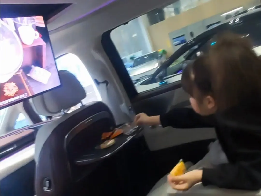 就这样和女儿并肩躺着,21.4英寸的超清娱乐屏放着她最爱的动画,手边摆着零食和温水,一边看片一边有一搭没一搭地聊天。她叽叽喳喳说着学校的趣事,我听着她软糯的声音,指尖偶尔捏捏她的小脸蛋,窗外是来往的人群,车内却像一个独属于我们的小世界,安静又温暖。没有工作的打扰,没有琐碎的烦忧,只有彼此的陪伴和这份恰到好处的舒适。