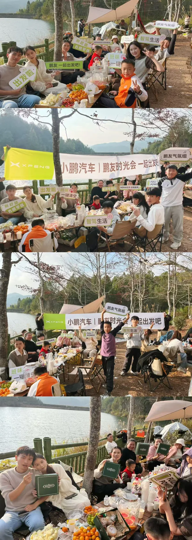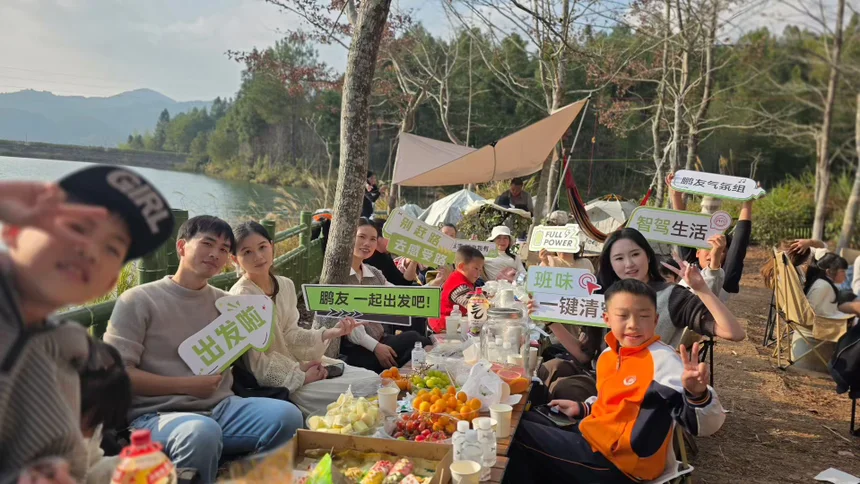 郊野的草地上,鹏友们搭起天幕,摆上美食,欢声笑语回荡在林间。有人分享着自驾的趣事,有人畅谈着与MONA相伴的点滴,彼此间没有陌生的隔阂,只有同频的欢喜。当祝福的歌声响起,当温馨的礼物送上,山野间的风都带着甜意,见证着这份由小鹏联结的情谊,也见证着一对新人的幸福时光。