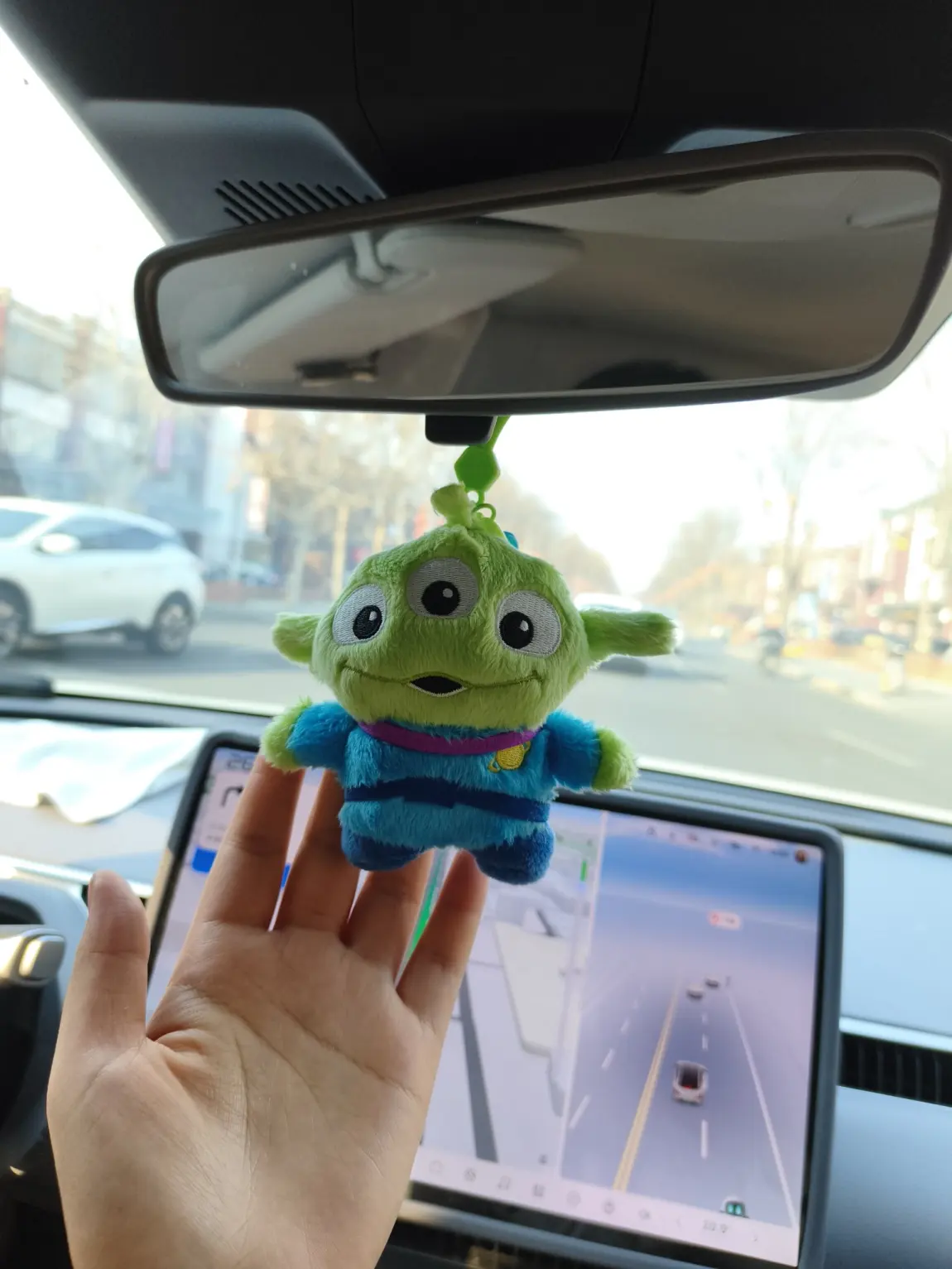 后视镜下🎀 三眼仔挂件轻轻摇晃,转弯变道都像在互动问好,