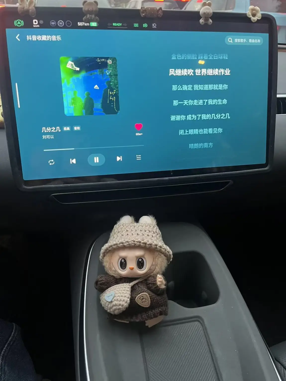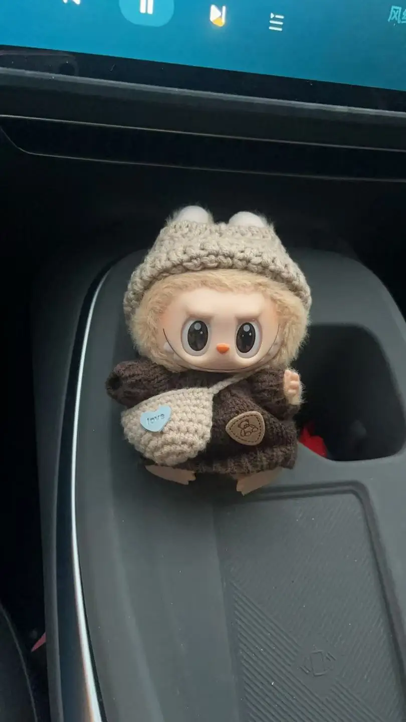 水杯架里📦 拉布布玩偶乖乖坐阵,堵车时看一眼就治愈;