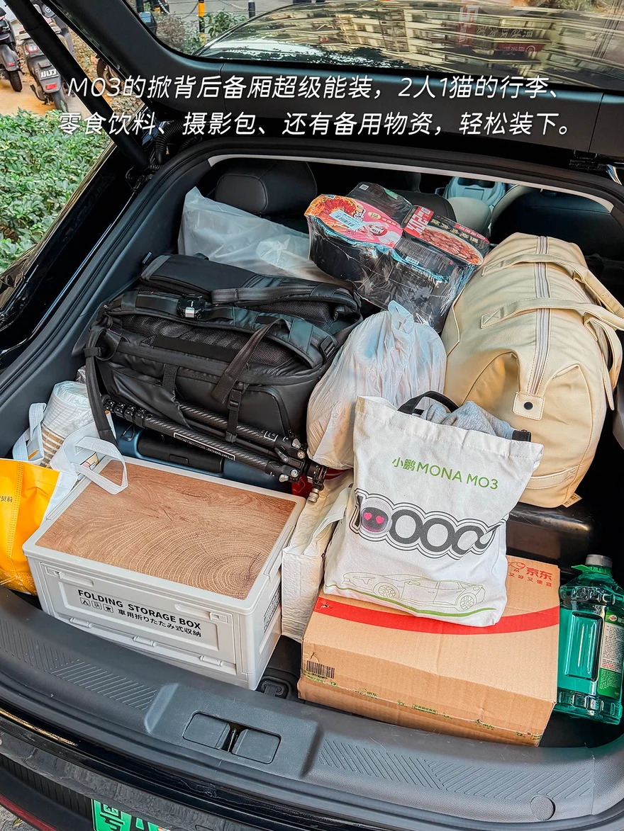 M03的掀背后备厢超级能装。所以如果只是2个行李箱+年货什么的,很轻松。
