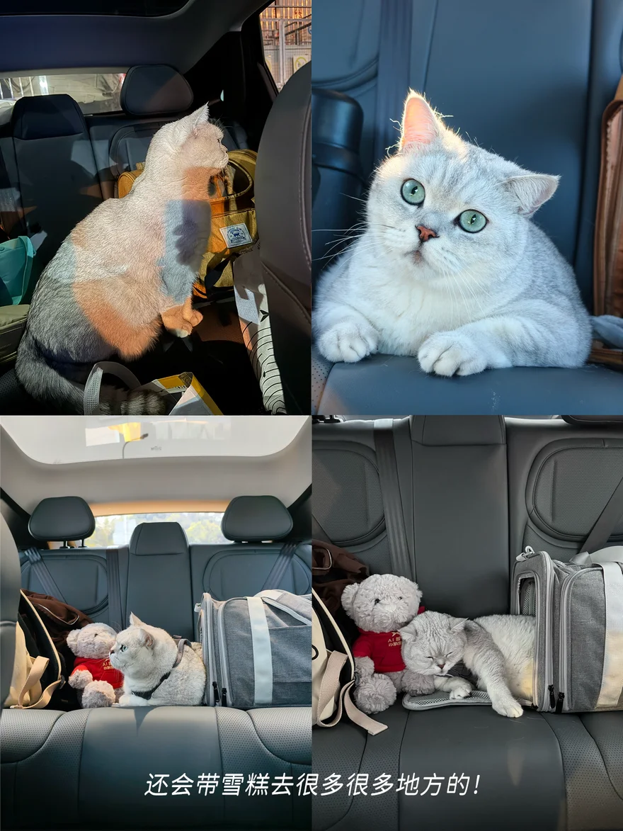 我们家雪糕现在也是去看过大海和雪山的猫咪了,出门时,后排都是他的,一个背包放在后座,他会自己选在包里睡还是在坐垫上睡,也偶尔会跑到扶手箱坐着看风景。可以准备一个水碗或者猫条,休息时给猫咪喂一点。到了服务区充电,人下车休息吃饭的时候,喊一声小P开守护模式就好了。