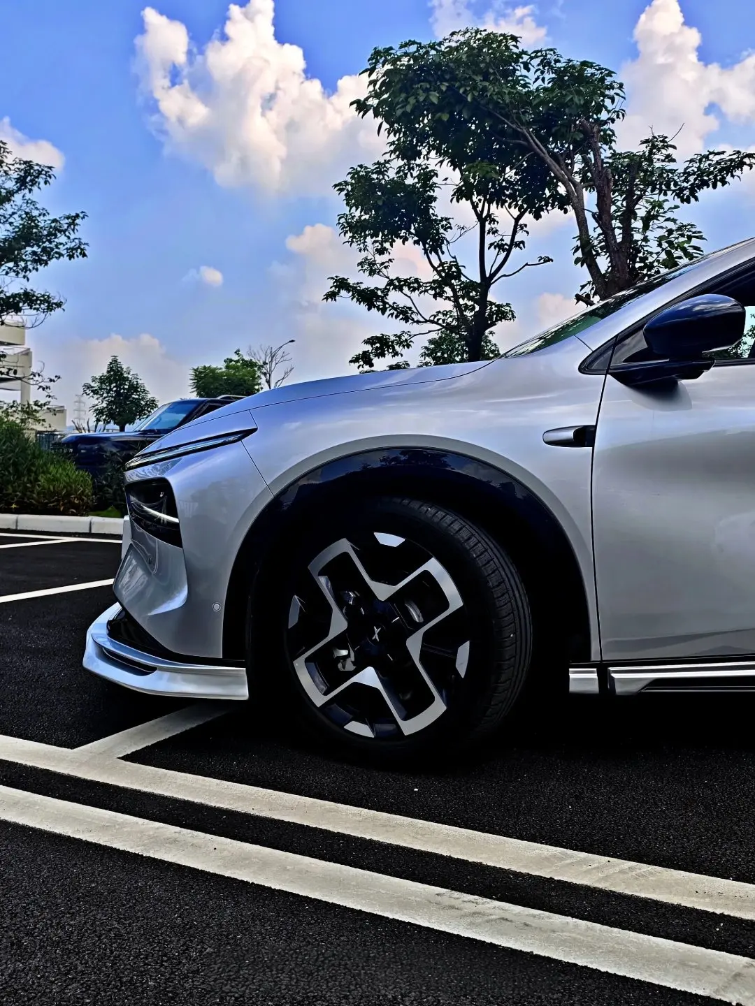 2️⃣ 颜值暴击:银色车漆在阳光下自带流光特效,20寸大轮毂气场全开,朋友见车直呼“这车帅出天际线”!