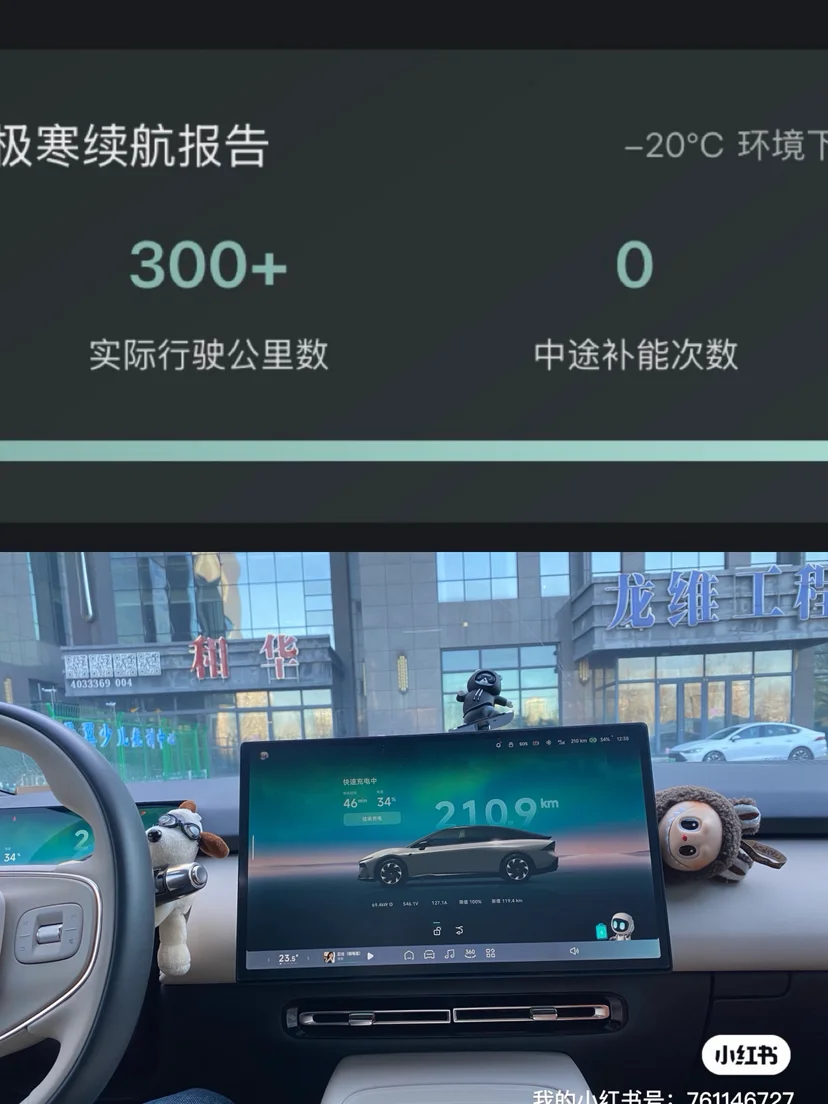 在-20°C的严寒下,车辆依然完成了300多公里的旅程且无需中途补能,证明了其扎实的续航实力