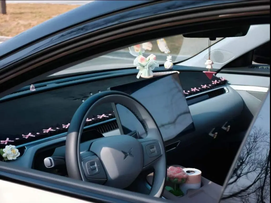 #藏在车生活里的浪漫# 还没提车就已经想好怎么装饰它了,山茶花车载香薰,黑色避光垫配小蝴蝶结,还有自制的针织编花,还贴了酷酷的悬浮顶,粉色的车轮毂,简直是又甜又酷,每次开车都是一种享受!