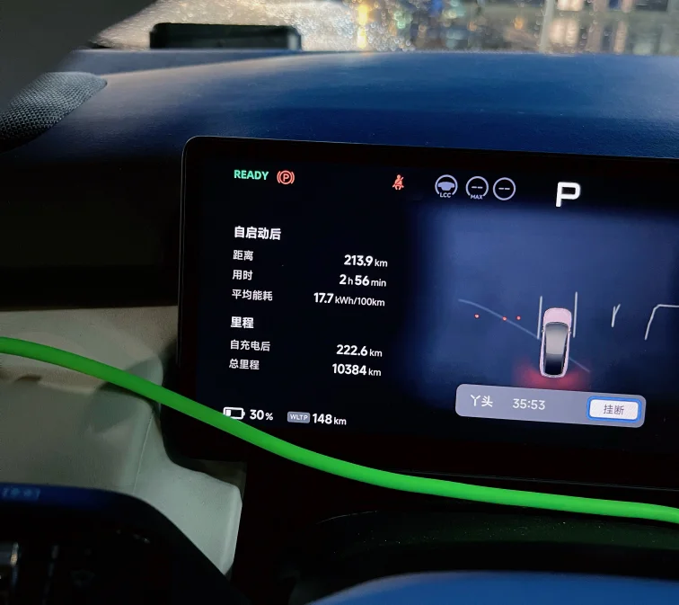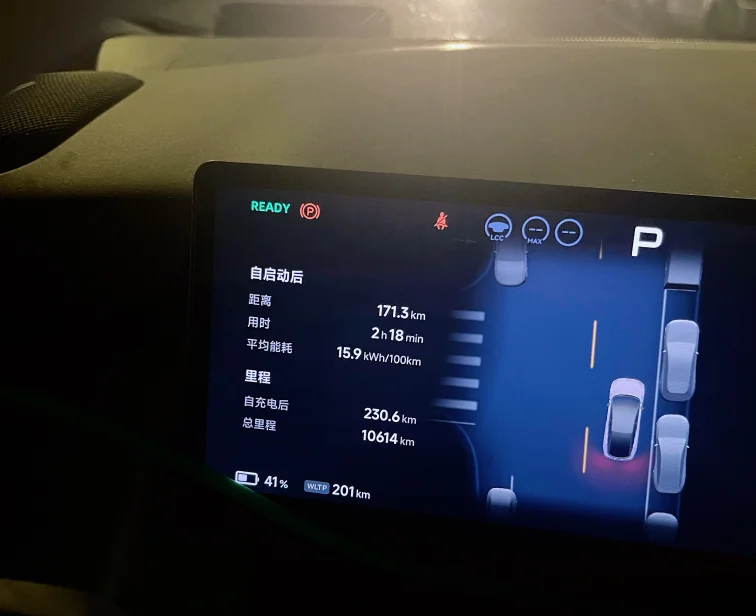 让小P开启休息模式,睡了一个半小时,凌晨2点半出发,WLTP剩余392km,驻车耗电仅相当于18km续航,能耗表现很优秀。