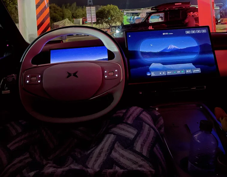 历经2小时58分,晚11点左右抵达预定的小鹏S4超充站。本段智驾里程205.5km,智驾占比95%;实际行驶213.9km,WLTP消耗463-148=315km,续航达成率≈67.9%。全程空调3档、26℃,方向盘+座椅加热全开,低温+高速+暖风全开,这个表现我已经很满意。