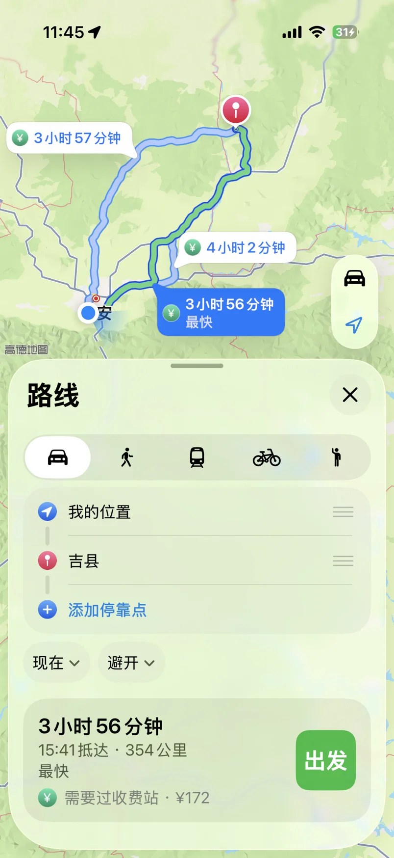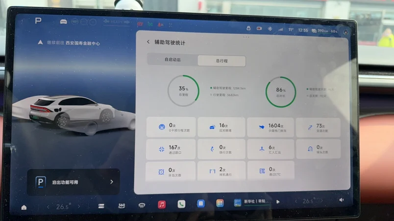 今年是提车后第一次开车回家过年,打算大年初 二从西安出发,一路智驾至媳妇家(山西省临汾市吉县),大概路程 350 公里,按照现在表显 14 的能耗,单程不用充电开过去应该没有问题。