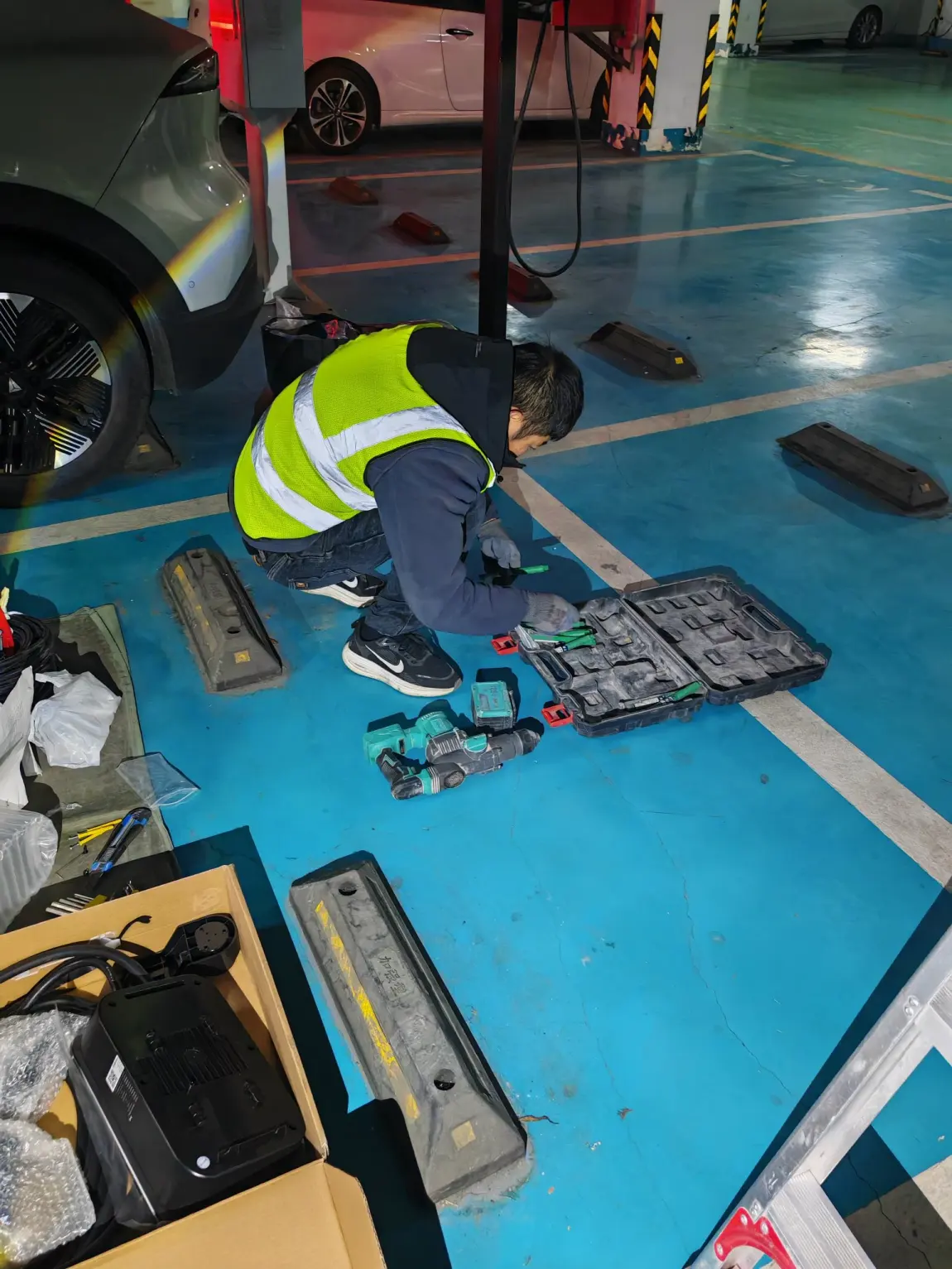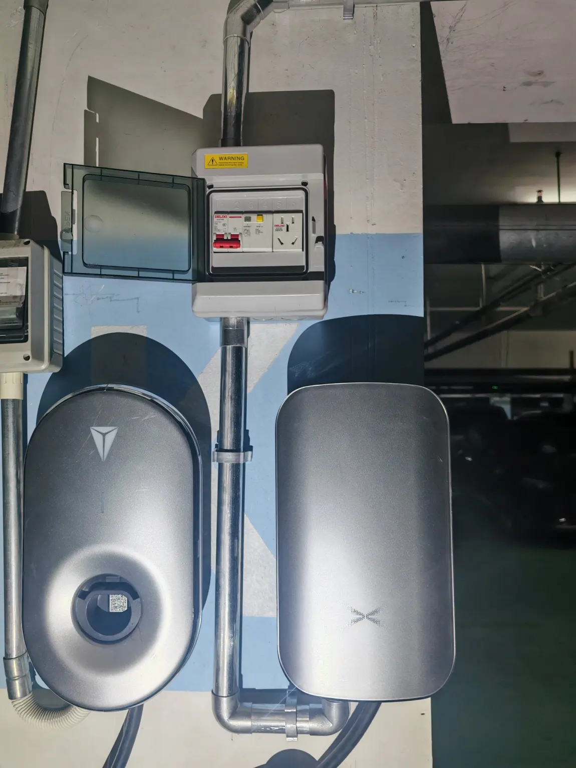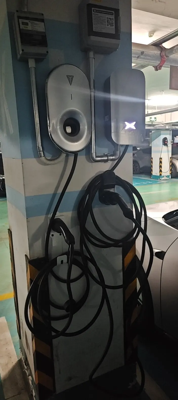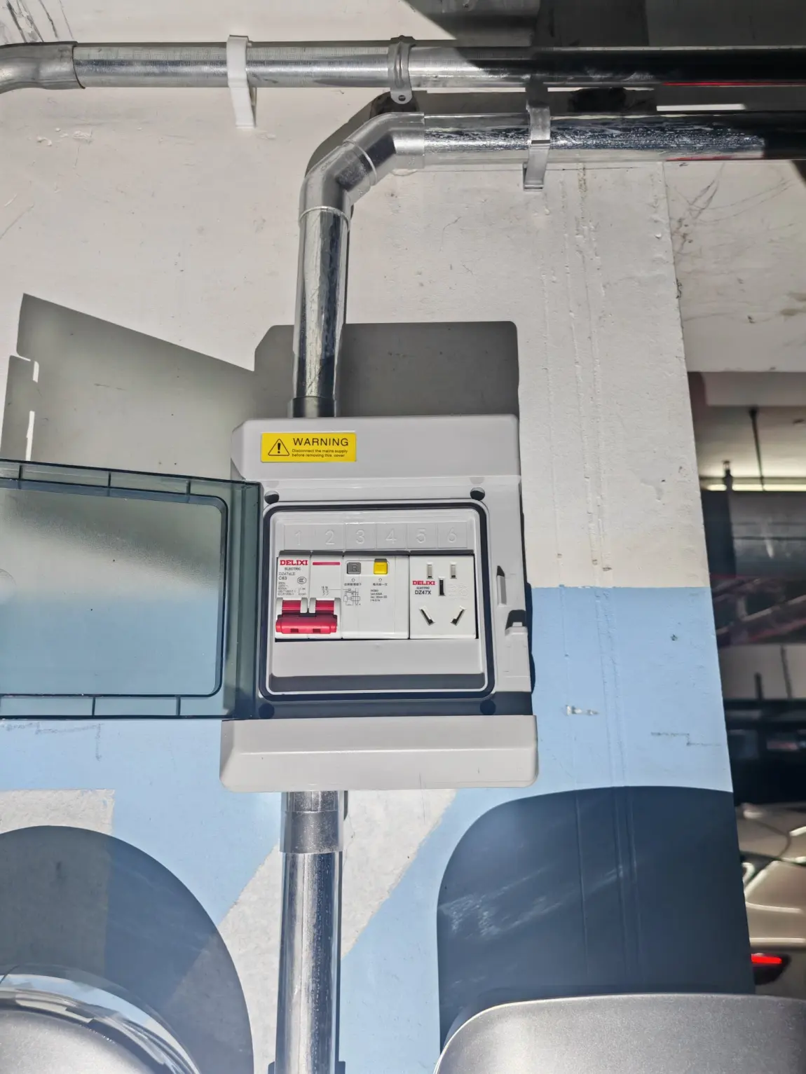 ✔️走线用的是镀锌管穿线,防腐蚀还耐用,地下车库潮湿也不怕生锈