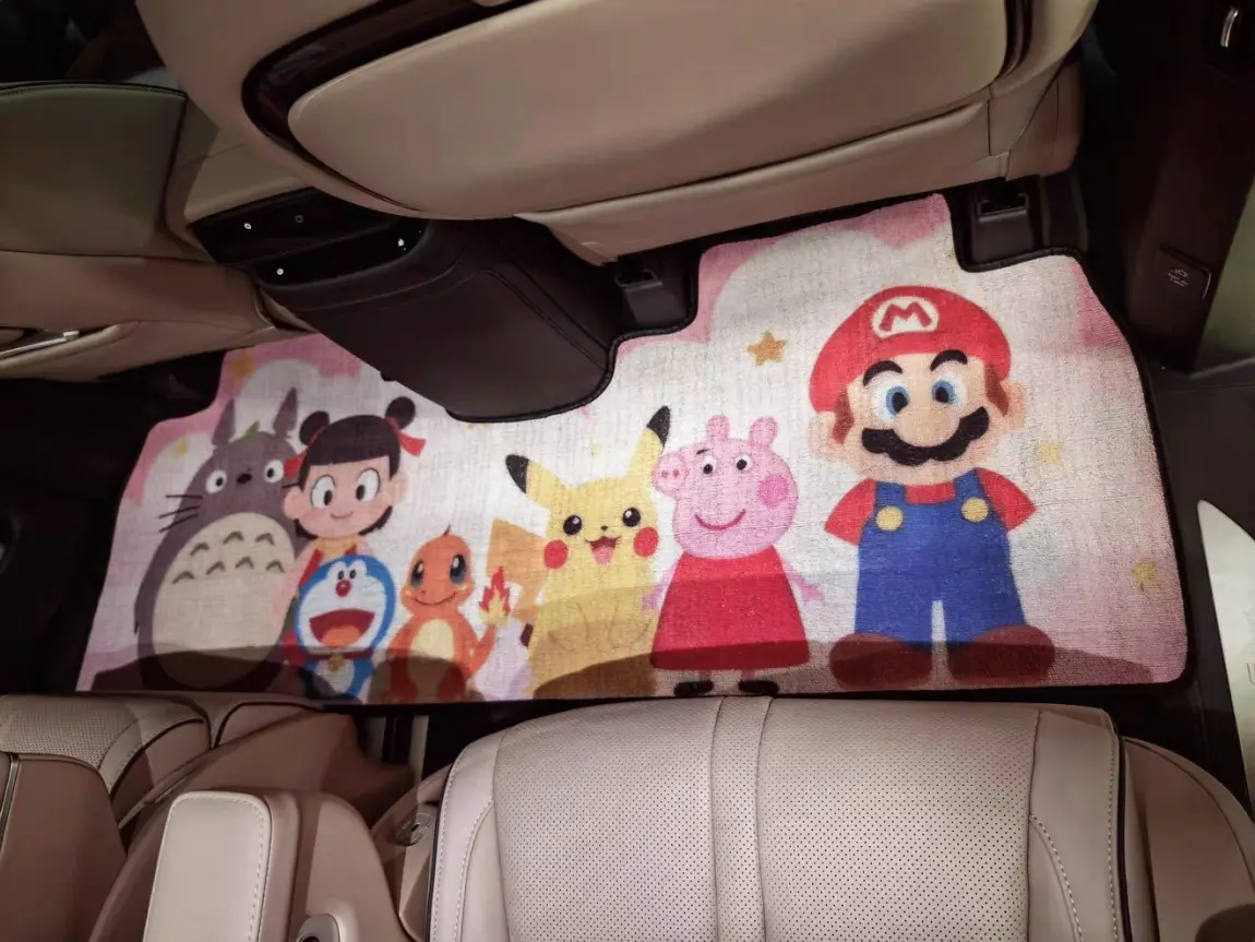 二排是孩子们的天堂,有大尺寸的娱乐屏,还有零重力座椅可以肆意玩耍,卡通人物通通集结在二排脚垫,孩子们一阵欢呼简直太爱!