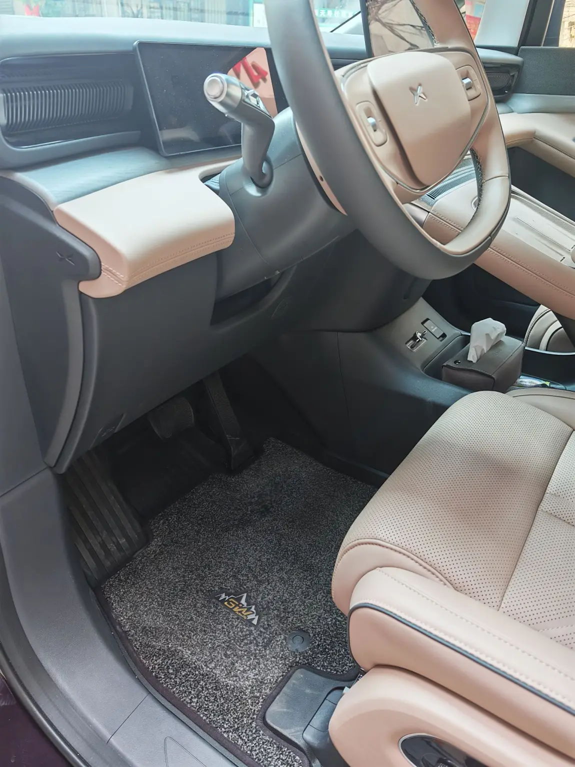 主驾位安排上颜值高、耐磨、舒适的脚垫,选择了小鹏商城合作商3W的脚垫,效果就是绝绝紫呀!