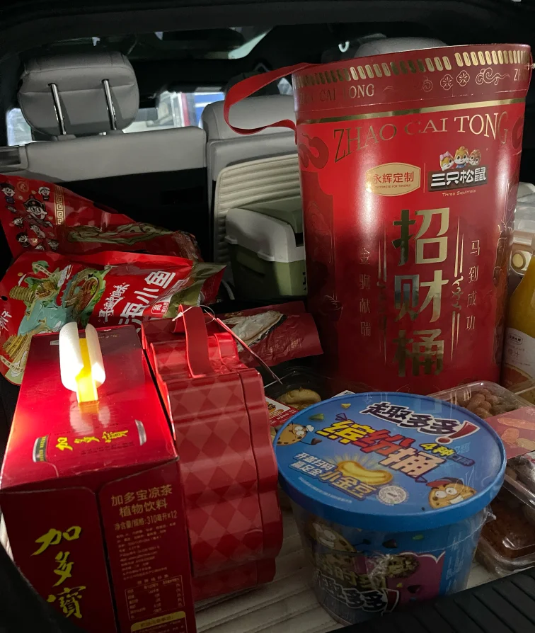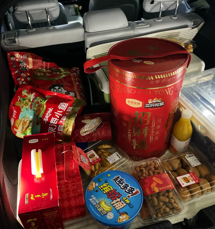 出发前特意绕去超市,想给家里的小宝贝挑满满一车爱吃的零食与年货。想起从前每次回家,精心选了一大筐心意,却总被后备箱的空间困住,挑挑拣拣、忍痛割舍,临走时望着没装完的礼物,满心都是遗憾,总觉得没能把所有疼爱都带回家。