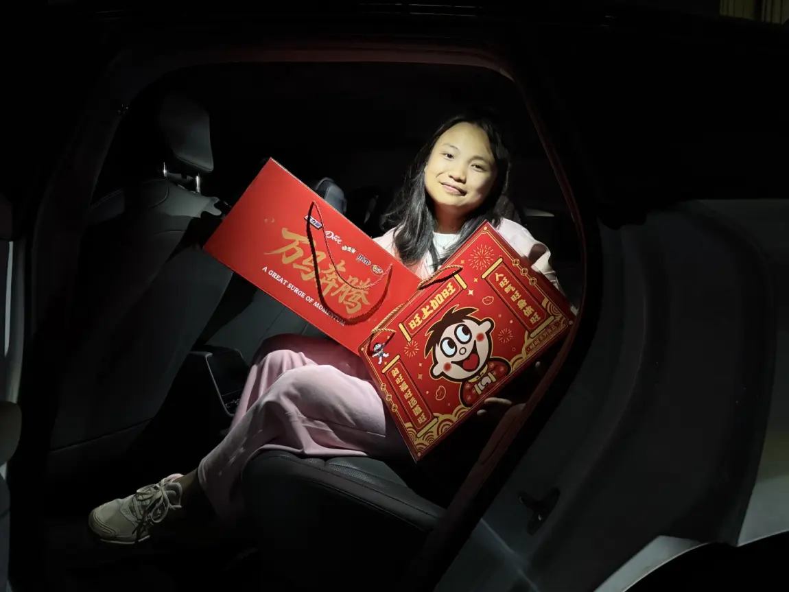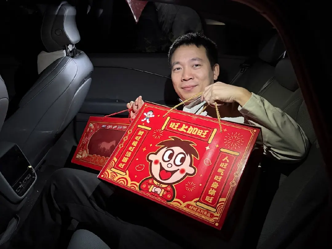 驶上高速,从容感前所未有。空间焦虑成了历史:爸妈的旺仔牛奶码得稳当;妈妈念叨的丹麦曲奇礼盒有了“专座”;孩子们的玩具塞了满袋。副驾只放一盒我的旺旺饼干。后视镜里是年货,前方是归家路。我懂了,“满载而归”装的不只是物件,更是一整年未说的牵挂。