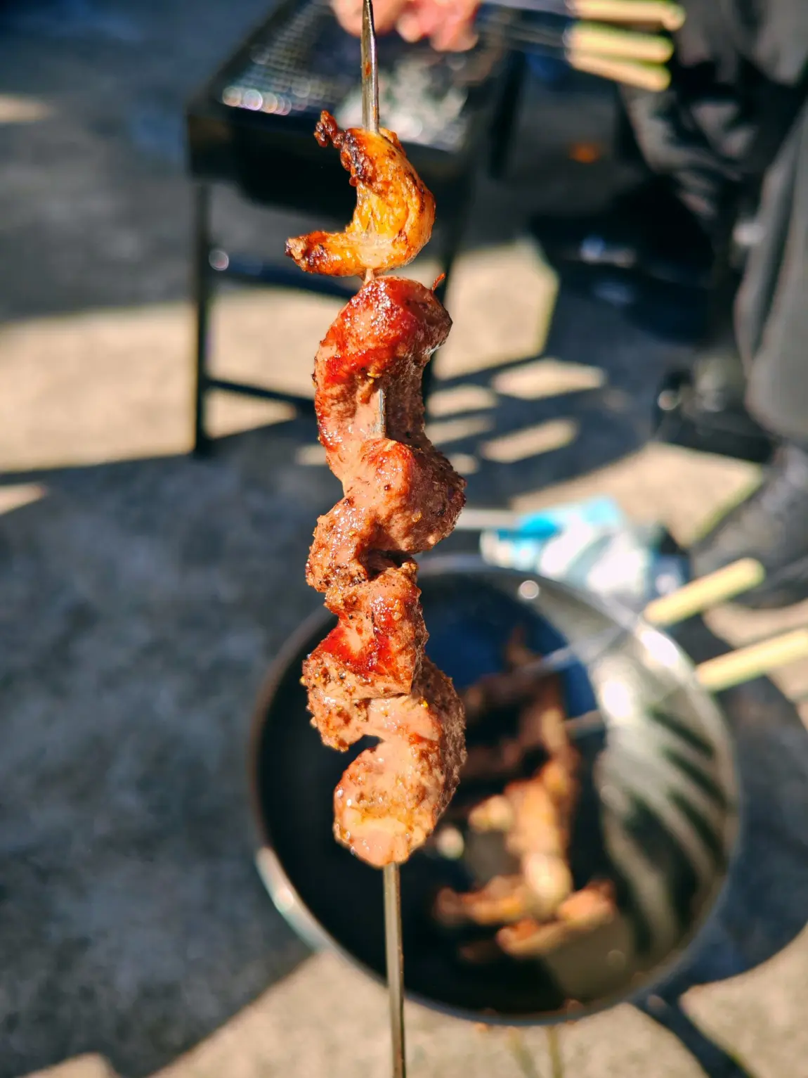 肥瘦相间的肉串在炭火上滋滋冒油,撒上孜然和辣椒面,肉香直钻鼻腔,外焦里嫩一口爆汁,这才是人间烟火气啊~