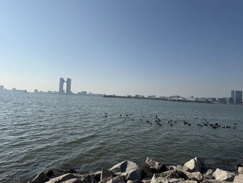 因为距离不远,到湖边转一转,放松一下身心。从浦东机场到滴水湖的路上,小鹏NGP辅助驾驶必须安排上,让他体验一下,辅助驾驶的魅力,打开座椅加热和座椅按摩,也尝试全方位的副驾乘座体验。