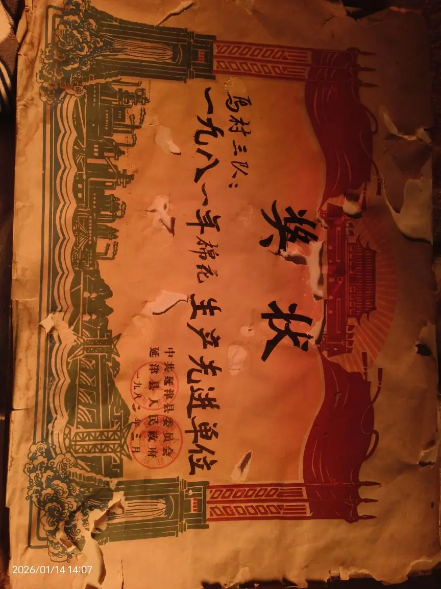 这次回家意法发现了一张古董级奖状,这是对前辈们辛勤劳作,努力建设新家园得见证。