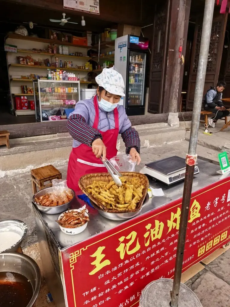 走进古镇,最不能错过的就是地道的川味小吃。在主街上,“王记油炸鱼”的香味扑面而来。老板娘娴熟地从大竹篮里夹起炸得金黄酥脆的小鱼,放入袋中。这是白衣古镇的招牌美食,用本地河鱼裹上芡粉,猛火炸至外酥里嫩,咬下去满口生香。