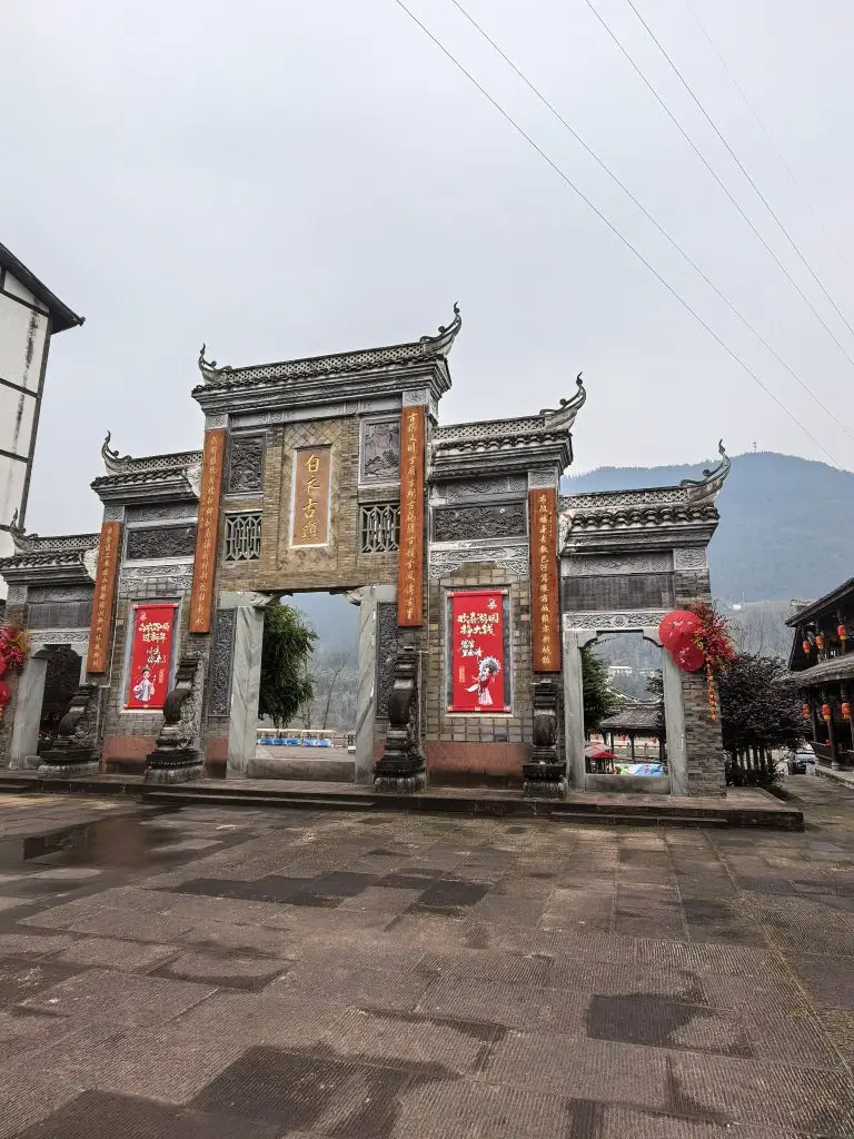 大约一个小时后,我们抵达了位于四川平昌县的白衣古镇。这座始建于秦汉的水乡古镇,被蜿蜒的巴河温柔环抱。青瓦白墙的民居、雕梁画栋的吴氏宗祠、肃穆的节孝牌坊,每一处都在诉说着千年的故事。