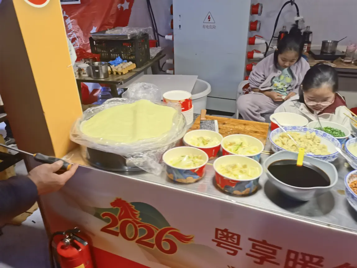 天色渐暗,美食节的摊位陆续开摊了。整个广场瞬间被烟火气和香气包围,烤串的滋滋声、摊主的吆喝声、人群的欢笑声交织在一起,构成了最动人的年味。