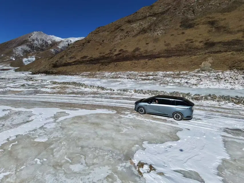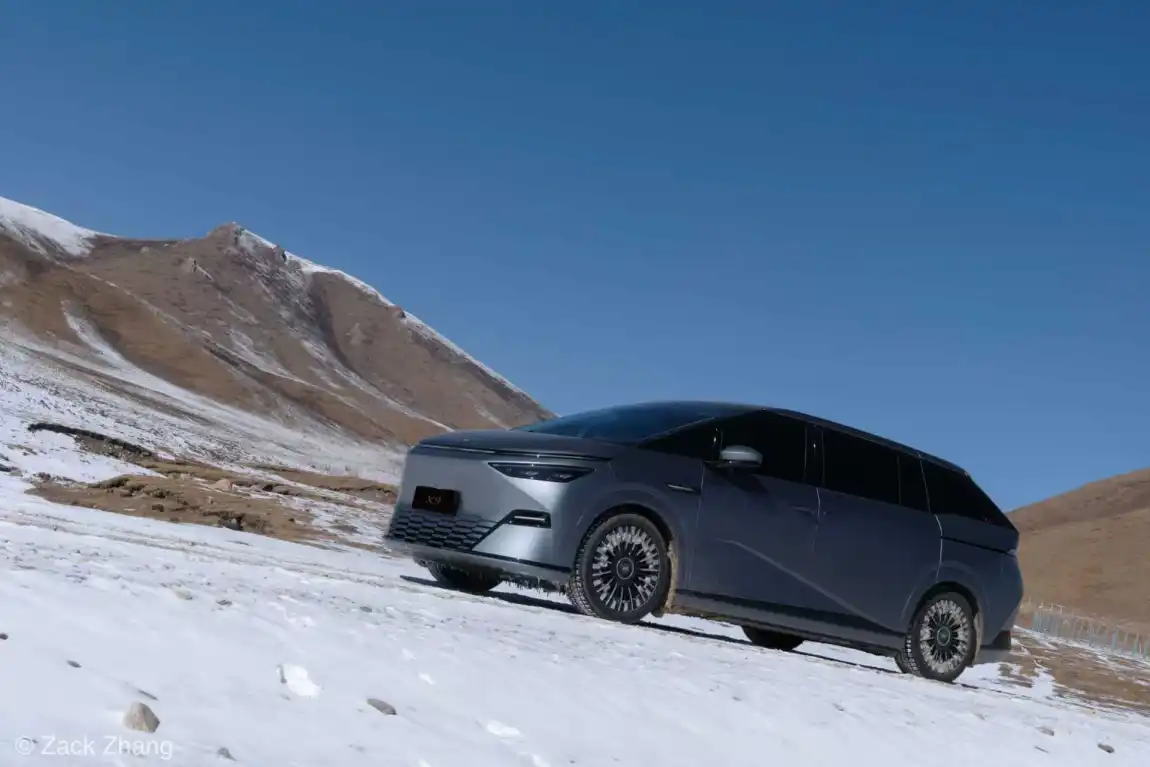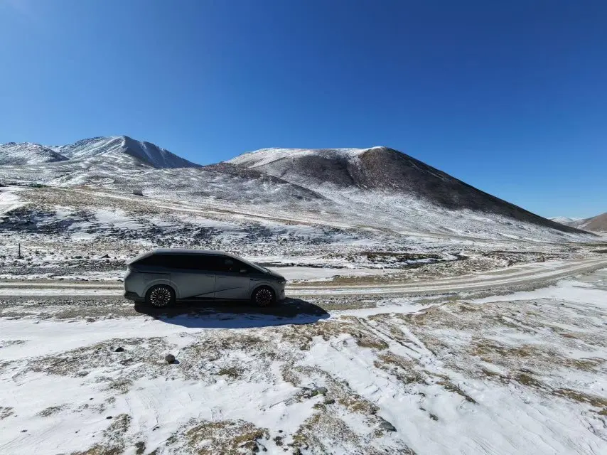 驾驶舱内温暖如春,智能座舱贴心调节着每一丝温度,车主手握方向盘,目光穿越无垠雪野,尽享静谧与自由。X9的强劲动力在冰雪路面上稳健前行,从容应对复杂路况,让探险无惧严寒。停驻湖畔,冰面如玻璃般平滑,倒映着车身与远山,宛如一幅天然画卷。