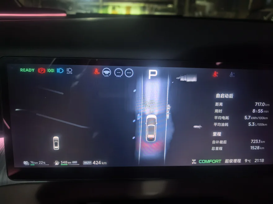 市区通勤直接当纯电车开,CLTC纯电续航452km,一周一充完全够,电耗低至16.5kWh/100km,每公里几分钱,家充桩更香!小孩放学直接长途旅行,自驾切换增程,去西安的路上馈电油耗才5.3L/100km,还能加92号油,没有续航焦虑,高速、偏远路段随便跑,800V超充10分钟补能300+km,补能比加油还快,家用太省心。