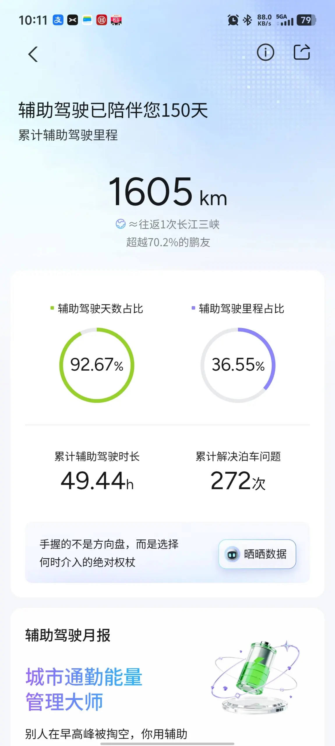 一路北上,车流渐密,NGP依旧从容。遇匝道提前减速、平稳入弯;邻车突然加塞,系统轻柔制动、不慌不忙;AR-HUD把导航与路况投在眼前,视线不用离开路面,安全感拉满。我不再紧绷神经,偶尔听听歌、和家人聊聊天,甚至能从容吃点零食,长途第一次变得不疲惫。