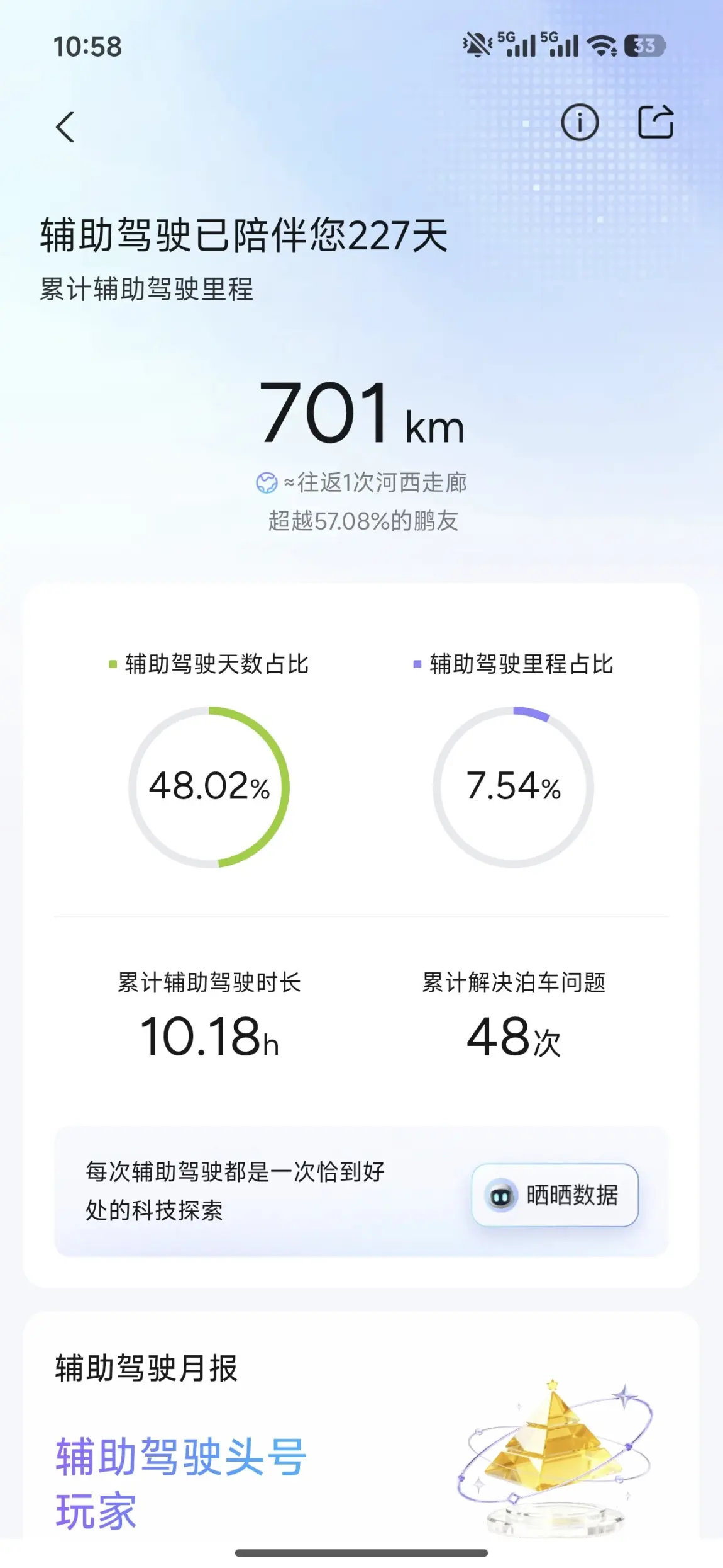 从城市通勤到长途自驾,小鹏的辅助驾驶已经陪伴我227天。它不仅是一项功能,更是我出行路上的“老司机”,让每一次出发都更从容、更安全。