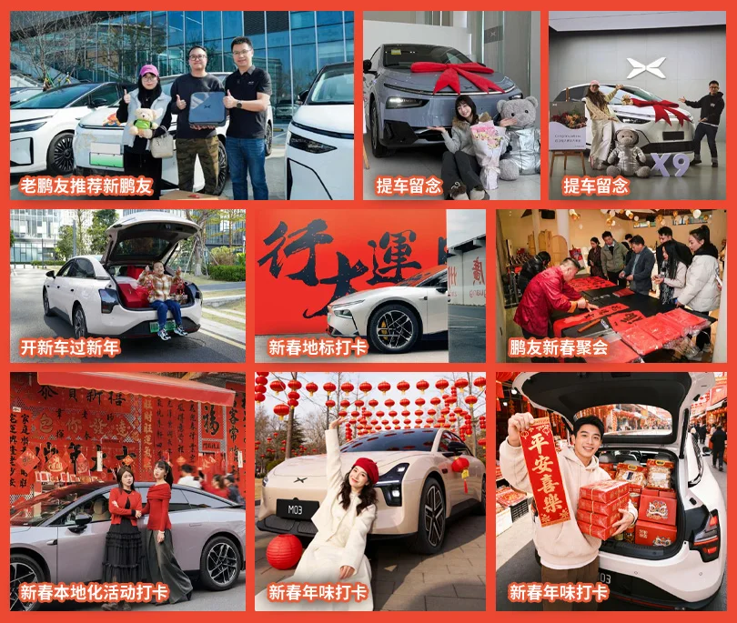 📌活动要求:带话题 #有鹏有年味# 发帖,记录下你作为新车主在春节期间的提车故事、首次新年旅程,或是作为老车主,分享你成功推荐亲友购车、让“情谊双倍,团圆加倍”的温暖故事。
