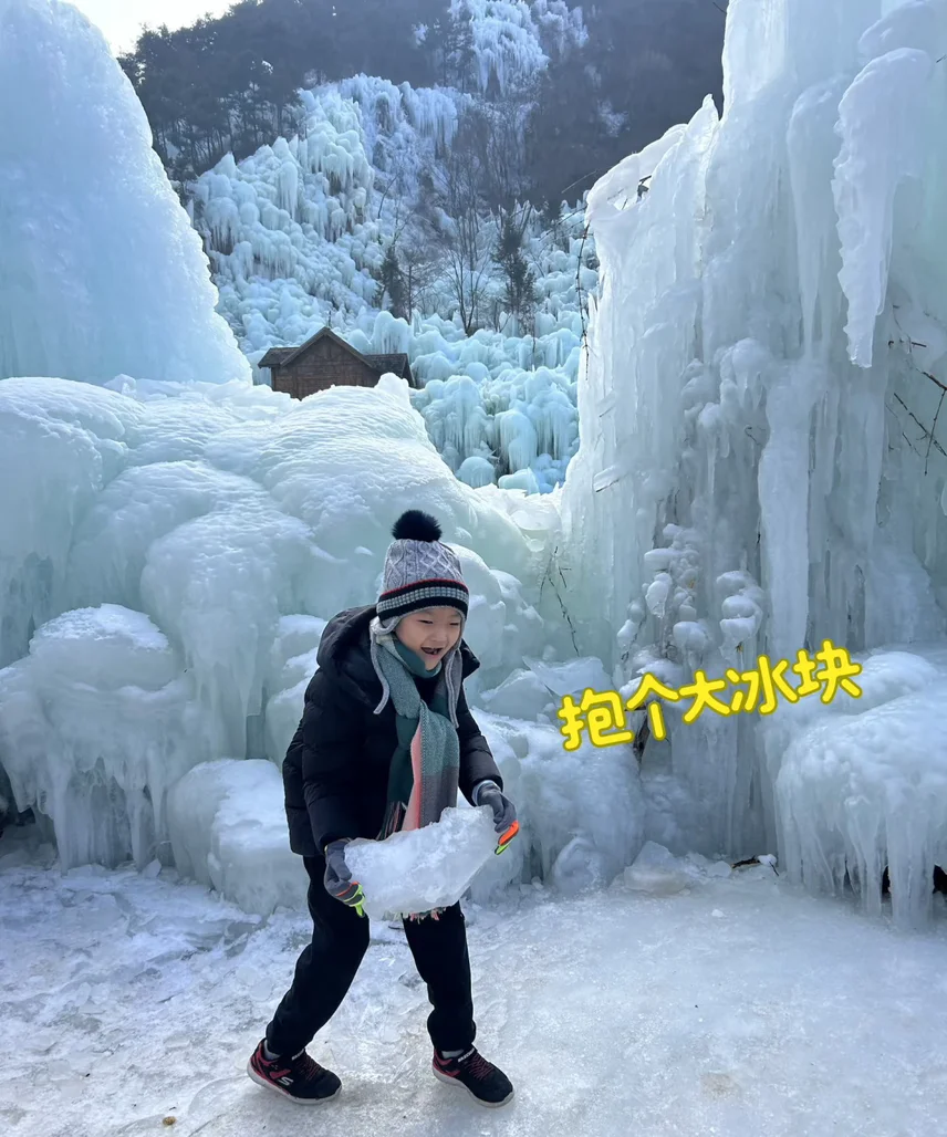 3️⃣小宝喜欢露营和冰雪运动,也给他带上装备,准备到爷爷家附近的公园雪场滑个雪,看看冰瀑🌨️🧨