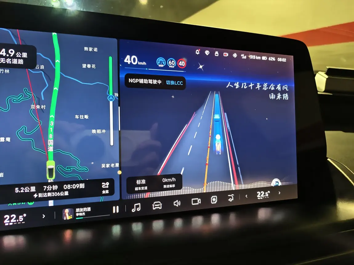 5.95版本更新后,给我最大的感受就是安心感很强,无论是道路居中,还是对低速行驶车辆的避让都感觉很安心,是春节返程的一大利器。