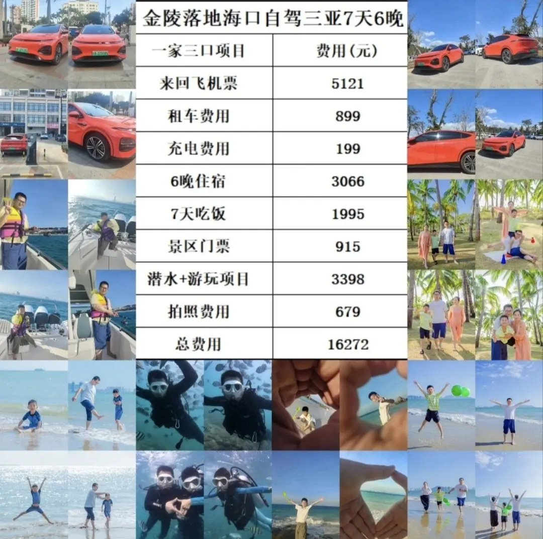再次感谢骚气橙G6这场纯电自驾的美好,这次7天6晚自驾游合计花费16272元。此次海南之行成为一家人最珍藏的温暖回忆,也让我们更期待下一次与G6奔赴更远的山海。