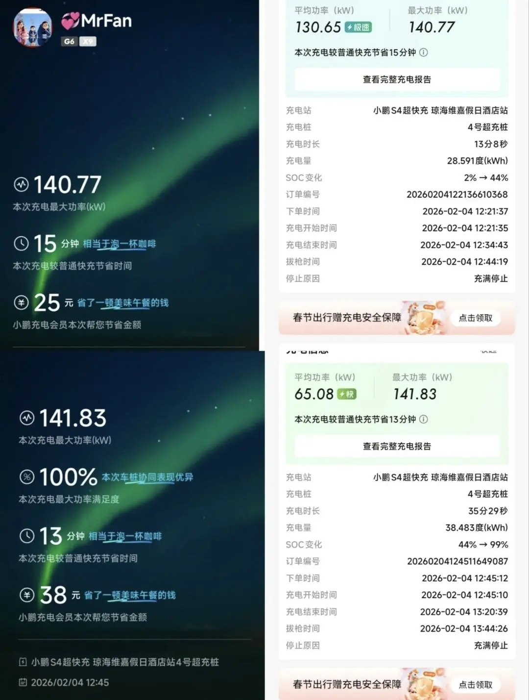 返程前在海口美兰机场附近小鹏超充站快速补能,800V平台快充效率拉满,一杯咖啡的时间电量大幅回升,为归途保驾护航。