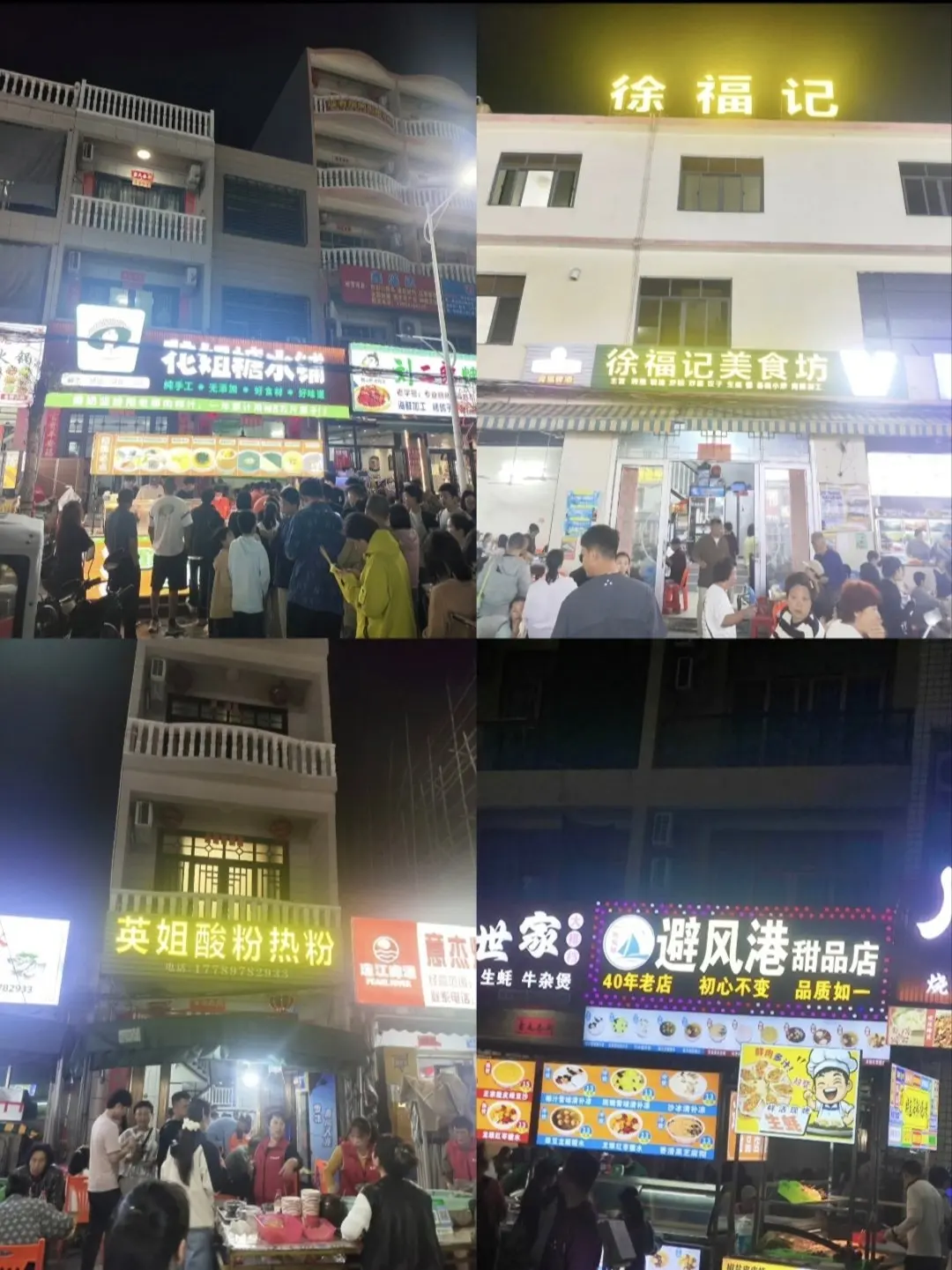 晚上新村夜市体验当地特色小吃,徐福记美食坊、英姐酸粉热粉、避风港甜品店、花姐糖水铺以及兴哥炒冰,舌尖上的海岛风味治愈一路奔波。
