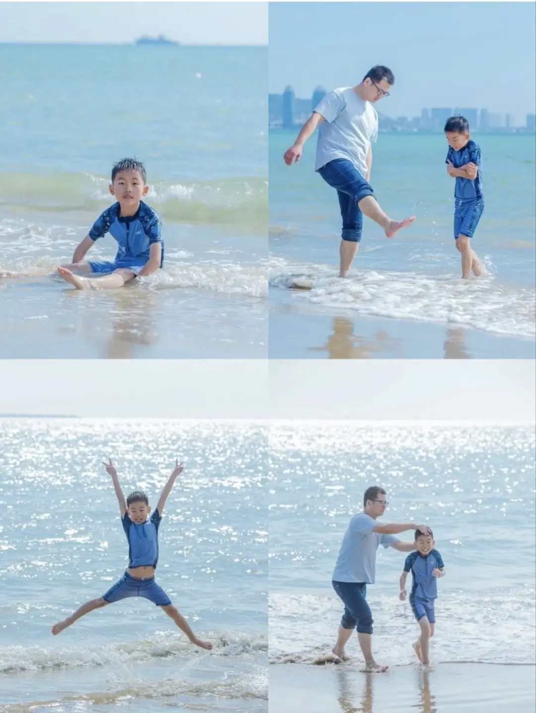 下午打卡清水湾的沙滩细腻绵软,踩上去沙沙作响,被誉为“会唱歌的沙滩”,我们赤脚漫步,看落日把海面染成金橘色,定格一家三口的温馨瞬间。