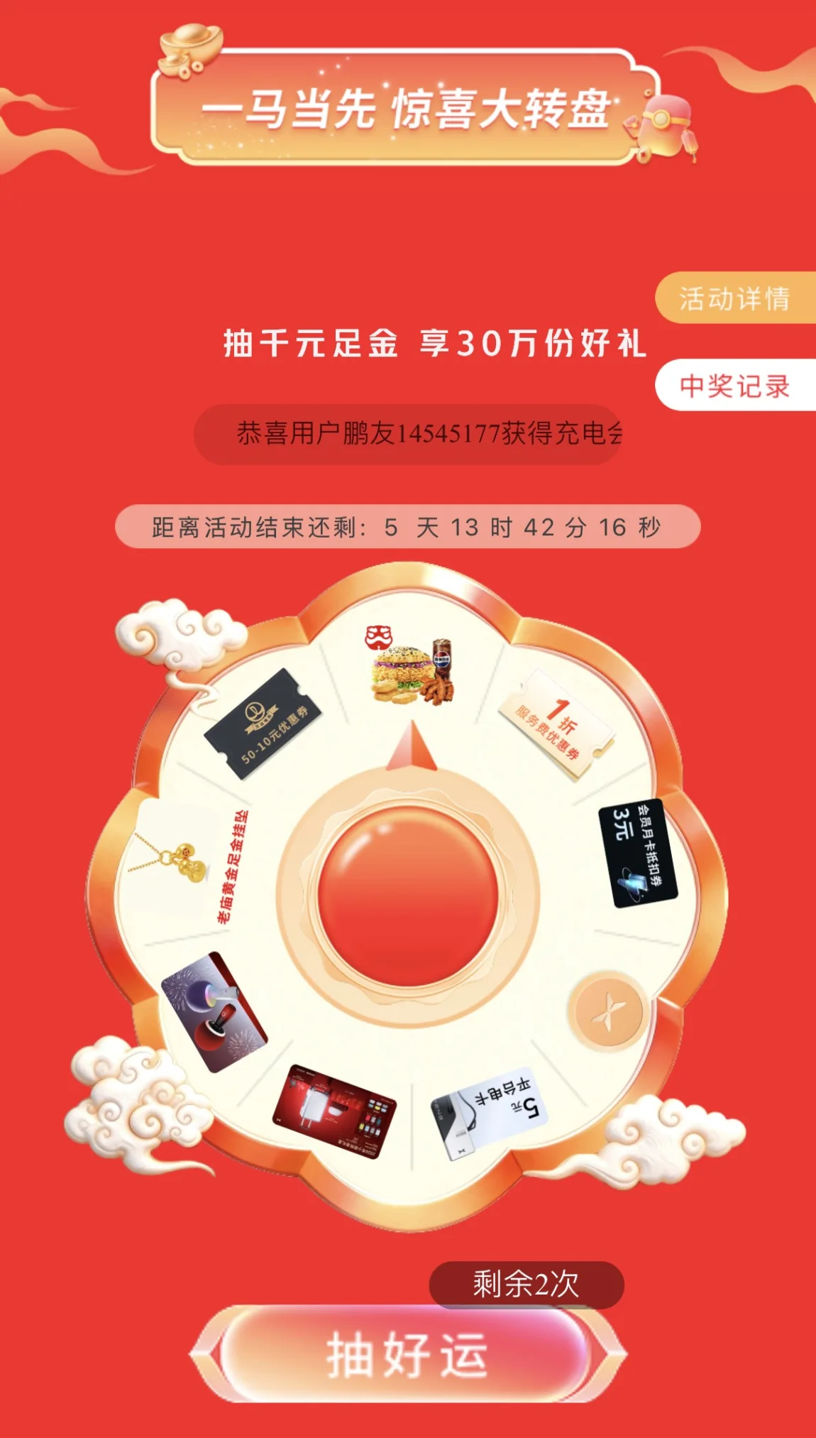 马上有电 | 畅行新年,抽足金开启全年好运