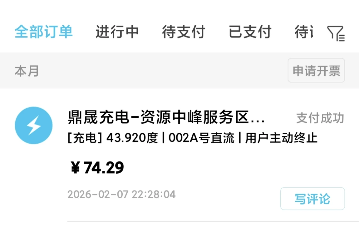 2月8日早上9点左右到达,这个服务区的名字忘了,这个点正好停车吃早饭,然后充电,吃完饭不管充多少直接拔枪。