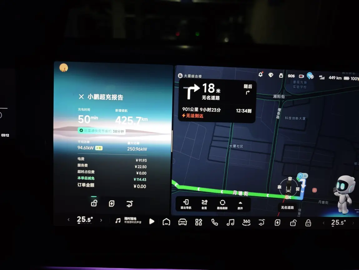 从中峰服务区大概凌晨2点到达湖南娄底小鹏s4,到达里程只剩20公里。这段路是夜间,而且有小雨,人眼看不清路,全靠ngp才能顺利达到。回程走的高速服务区电价都很贵,在1.6左右,所以这个小鹏S4充爽了,一下省了100多块。这个小鹏S4在地下停车场,充完就在车里休息了几个小时,天亮出发。