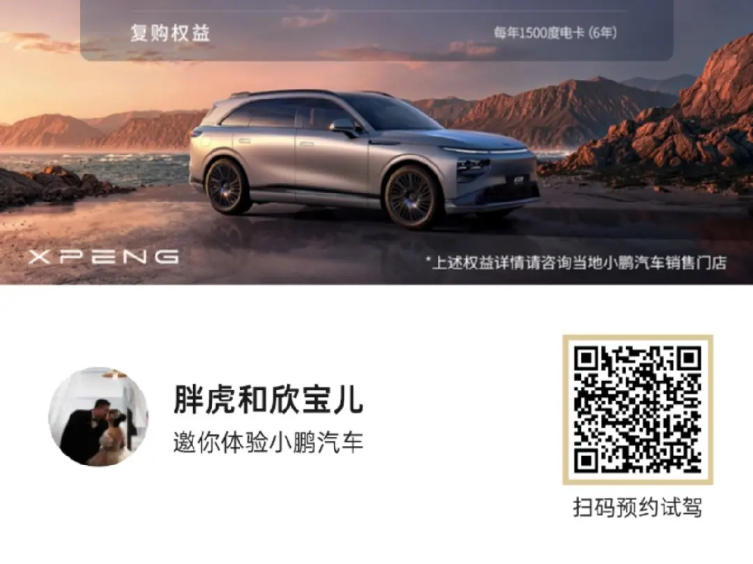 问了销售才知道,现在买小鹏好多车型都送每年1500度电卡(居然送6年!),折算下来每年能省一千多电费💸 对于我这种通勤党+周末自驾族,简直是宝藏福利!