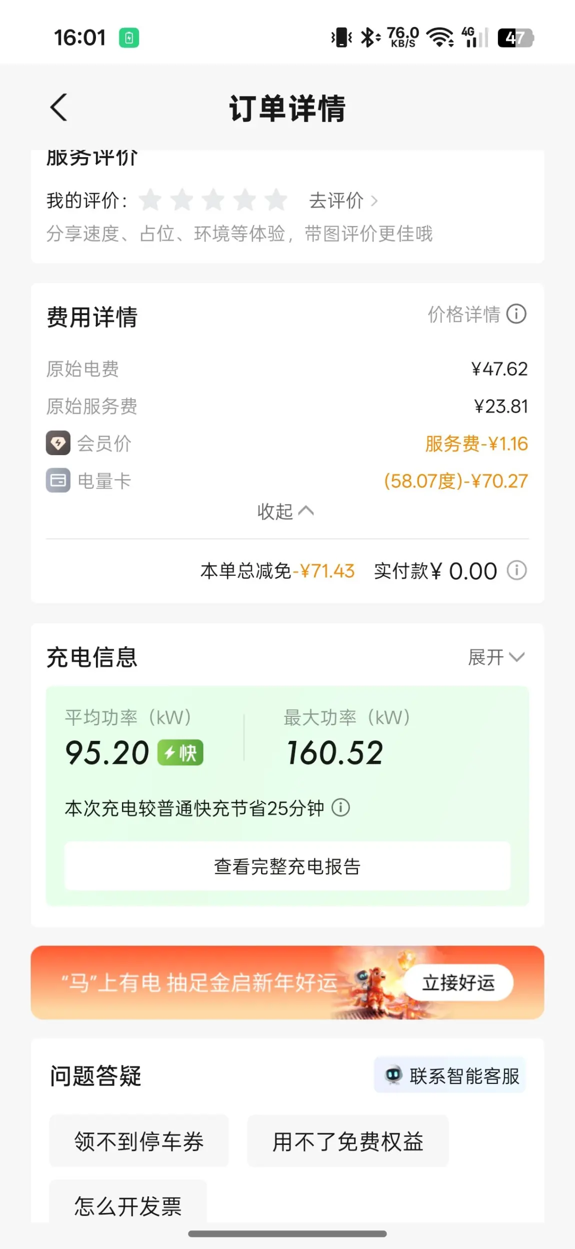 昨天跑高速忘充电,本来以为要花大几十,结果用复购送的电卡直接抵扣!两单充电费+服务费71块多,实付居然都是0元😍 这羊毛薅得太爽了~