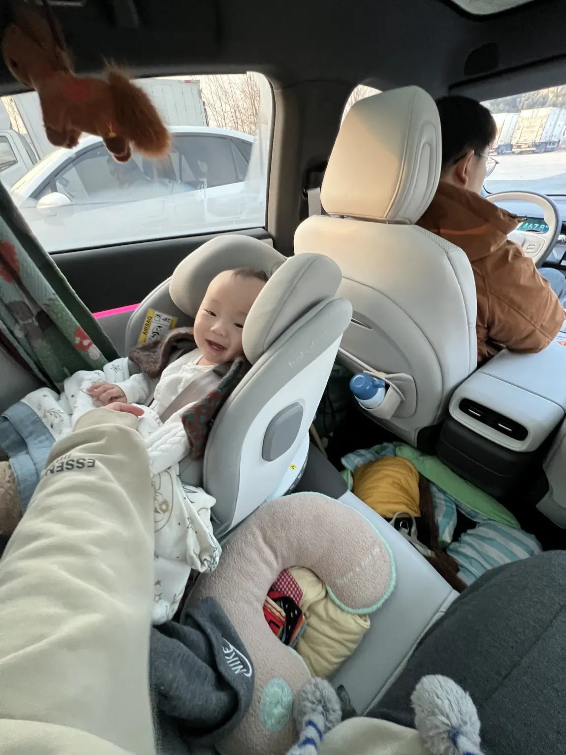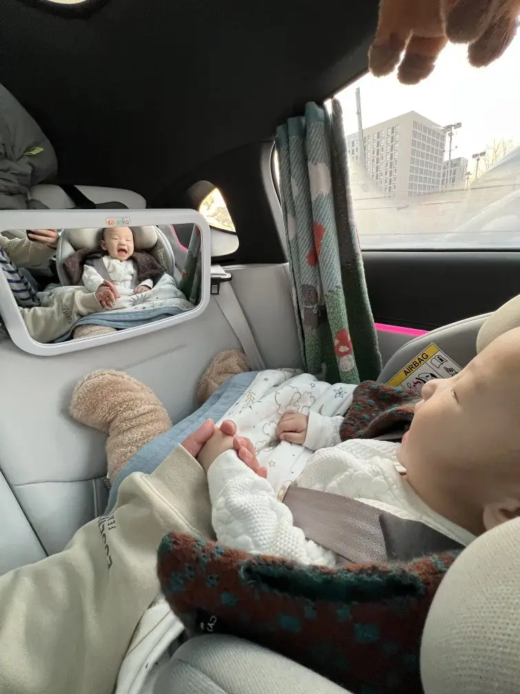 希望车能识别儿童座椅,可以和车机互联,宝宝安全座椅的加热和通风可以用小p控制就最好了。如果能再加个后排宝宝画面,开车等红灯能直接看,不用回头。最好有离车忘带孩子提醒,杜绝危险。再来个一键哄娃模式,关灯、静音、放白噪音,宝宝睡觉更踏实。另外车里多放点母婴用品的储物空间,扶手箱能恒温放奶粉、温水就更完美了。期待期待(✧◡✧)。(宝宝车里睡的很安稳👍🏻↓)
