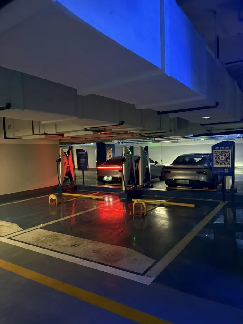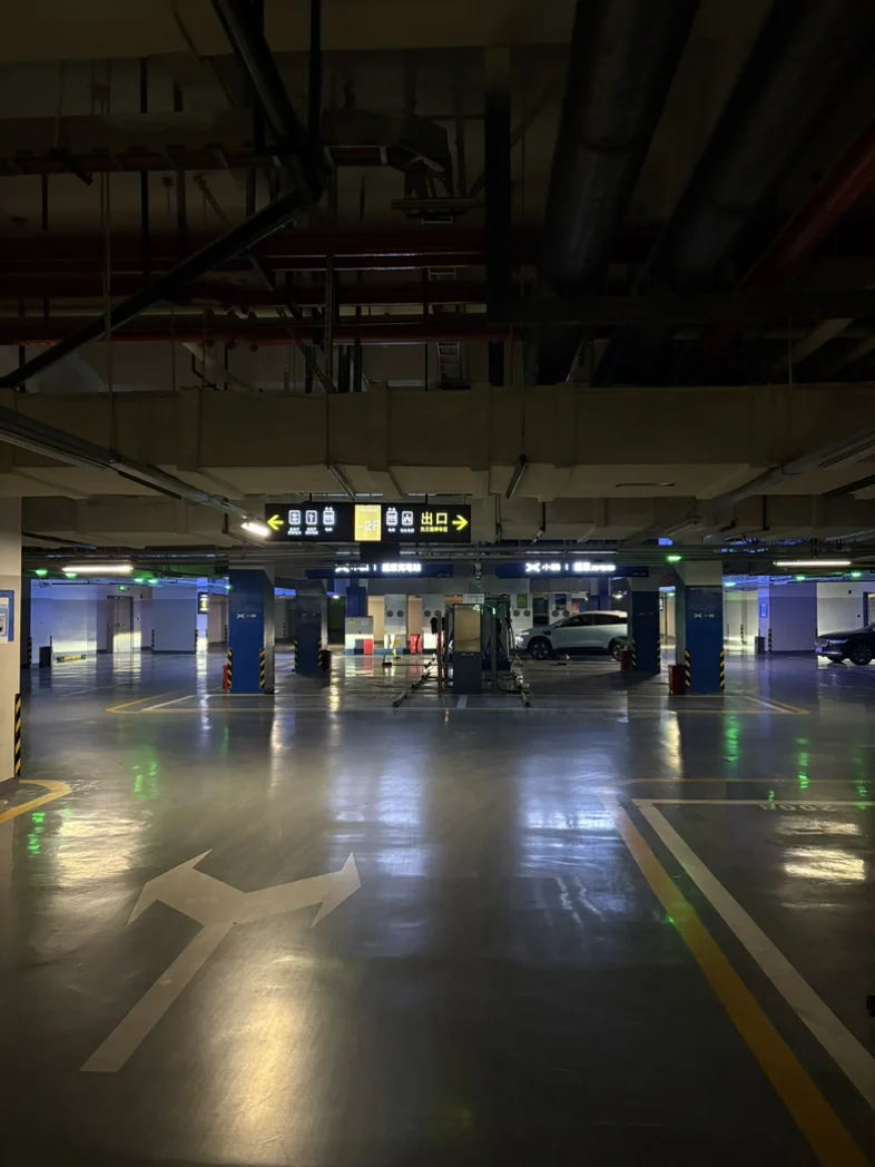 根本不用担心找充电站难免绕路。抵达后才发现,从车库入口到充电站沿途,均设置了字体硕大、标识醒目的指引牌,清晰明了且辨识度极高,循着指引一路前行,无需多余摸索,便能轻松找到目的地。