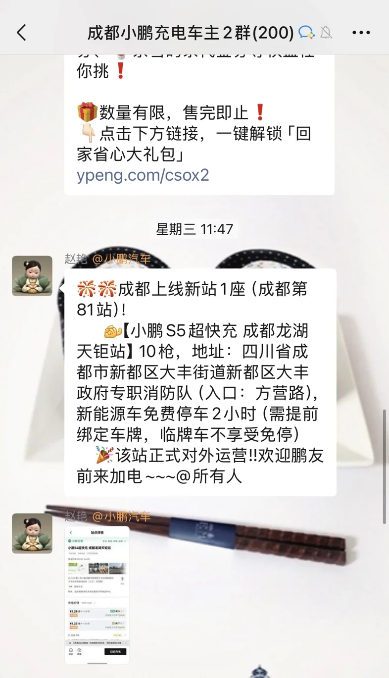解锁新站专属优惠。微信加入小鹏充电社区群,官方会及时推送新上线充电站信息及专属优惠,新站充电常享6折优惠力度可观。日常多关注社区动态,既能第一时间掌握新站位置,避免充电排队,又能享受实实在在的省钱福利,尤其适合日常通勤、短途出行时使用。