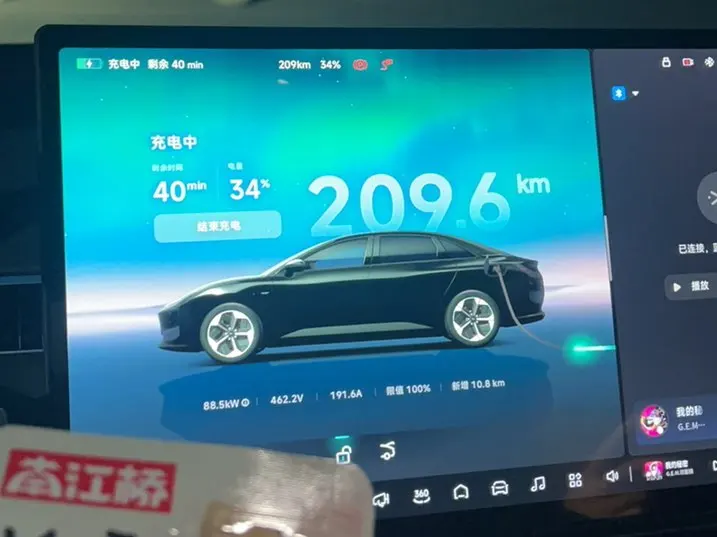 出发前我在车机上规划好了路线,沿途的超充站都标得清清楚楚。到了服务区,充电桩很好找,插上枪就能充,速度也快,喝杯咖啡的功夫,电量就从30%冲到了80%,完全不耽误赶路。
